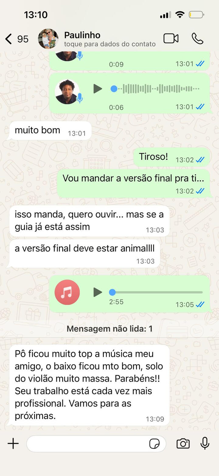 Você me envia sua música ou ideia, mesmo que seja só voz