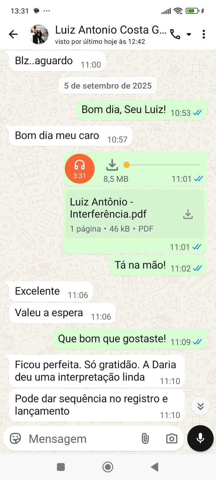 Você me envia sua música ou ideia, mesmo que seja só voz
